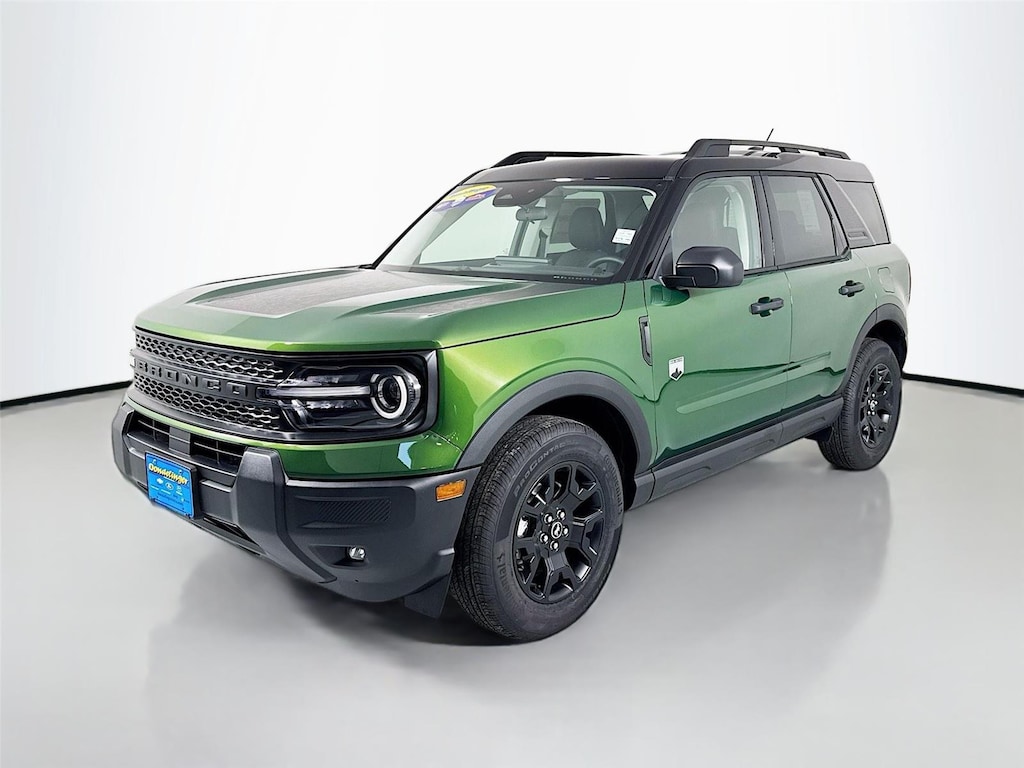 - Includes cargo mat, front and rear floor liners (without carpet mats), textured matte black hood graphic, Carbon Black grille with black painted Bronco lettering, painted shadow black roof, premium-trimmed sport contour bucket seats, front driver/passenger seat back map pockets, unique badges with black accents, 17 inch matte black-painted aluminum wheels, 225/65R17 102H all-season tires, and modified smoked chrome Ford oval on liftgate with black painted Bronco Sport lettering.