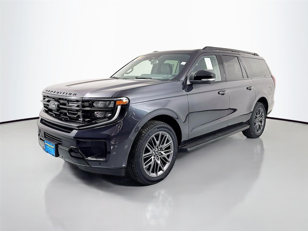 - Includes 22 inch x 9 inch Magnetite painted aluminum wheels with P275/50R22 all-season tires, Platinum badge in black on tailgate and Expedition lettering in black on hood, carbon black front bumper/fascia, black belt molding, black roof rails, signature grille lighting, black bezel headlamps with ebony trim applique, illuminated rear spoiler, fixed front air dam, Black Onyx perforated leather-trimmed seats, Stealth interior trim package, and rear side laminated glass.